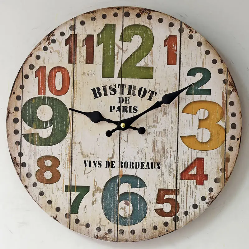 Creative Wall Clock Vintage Style Wooden Round Clocks Homedecoration