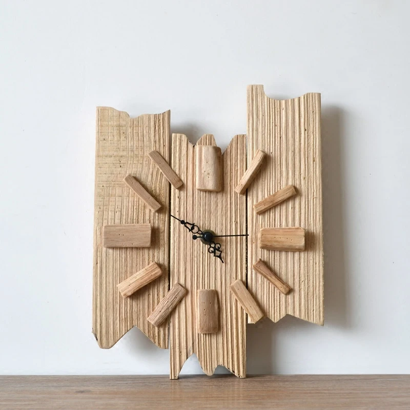 Creative Rough Wood Retro Wall Clock Brief Pastoral Handmade Wood