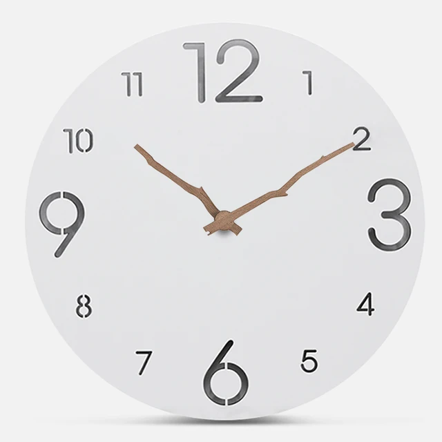 Florlife 12 Inch Creative Wood Wall Clock Hanging Modern Mute White