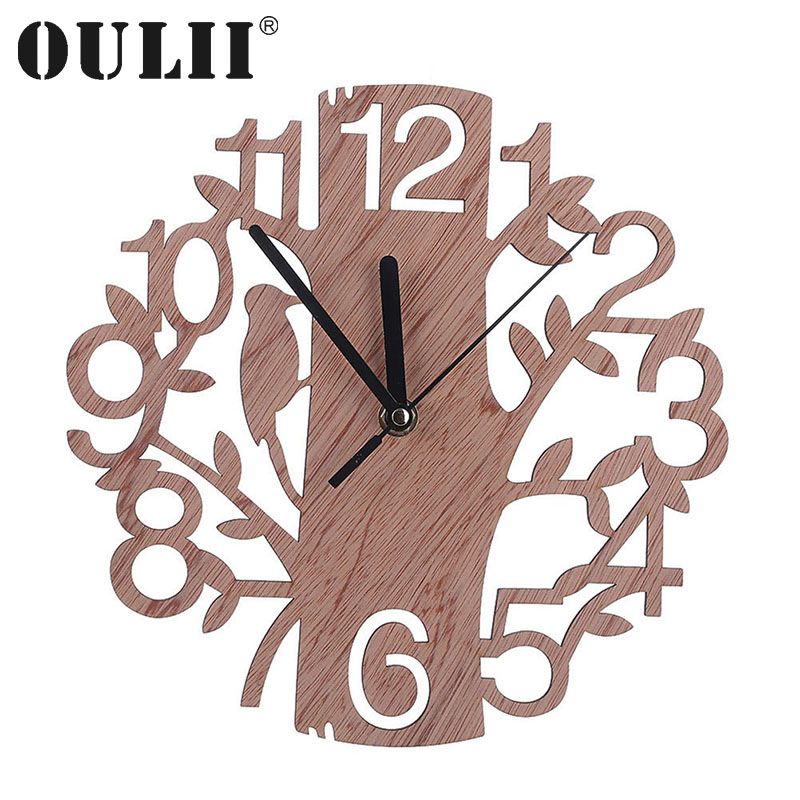 Oulii Creative Tree Shaped Wooden Wall Clock House Living Room