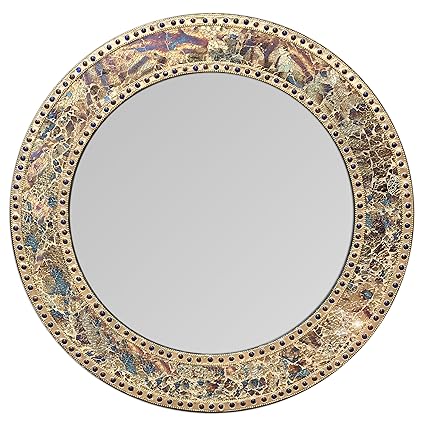 Amazon Com Decorshore 24 Fired Gold Round Wall Mirror Crackled