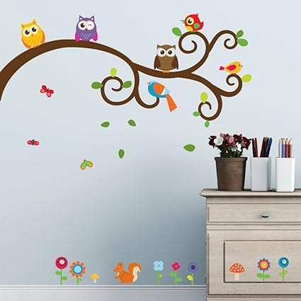 Wall Decal Tree Flowers Birds Cat Vinyl From Amazon Wall Decal