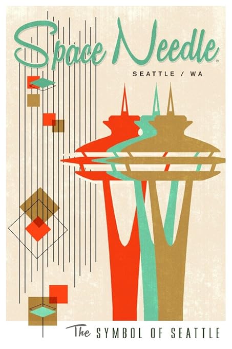 Amazon Com The Space Needle Simple Block Color Mid Century