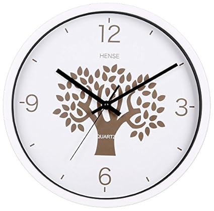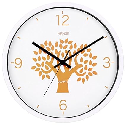 Hense 12 Inch Round Wall Clock Brushed Aluminum White Metal Frame
