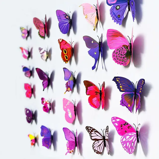 Pink Red Purple 3d Magnet Butterfly Festival Decal Home Wall Sticker