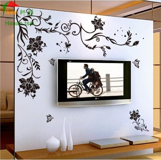 Wholesale Black Flower Vine Butterfly Vinyl Wall Stickers Home Decor