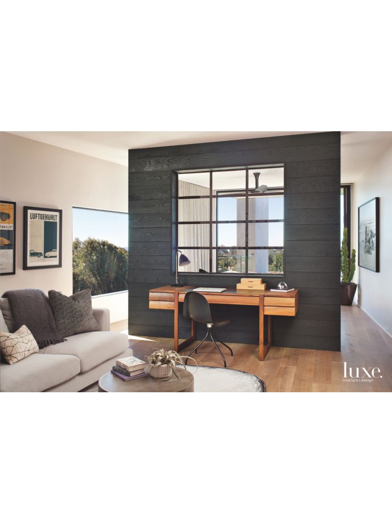 Moody Black Wall And Desk With Window Like Structure Luxe