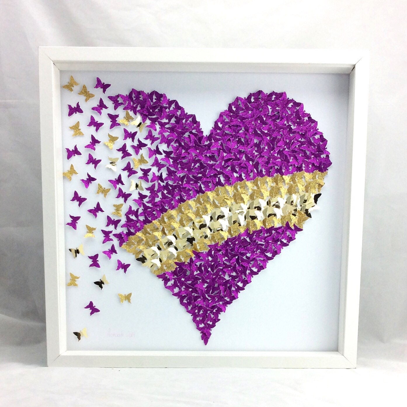 Purple Heart Gold Heart Paper Butterfly Wall Decor Butterfly