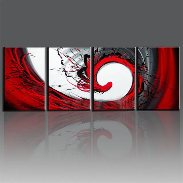 Hand Painted Red Black White Canvas Oil Painting Modern Abstract