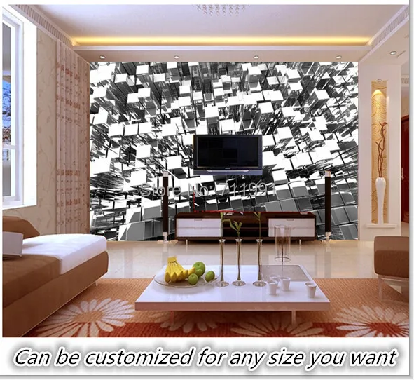 Free Shipping Custom 3d Silver Blocks Abstract Wall Mural Wallpaper