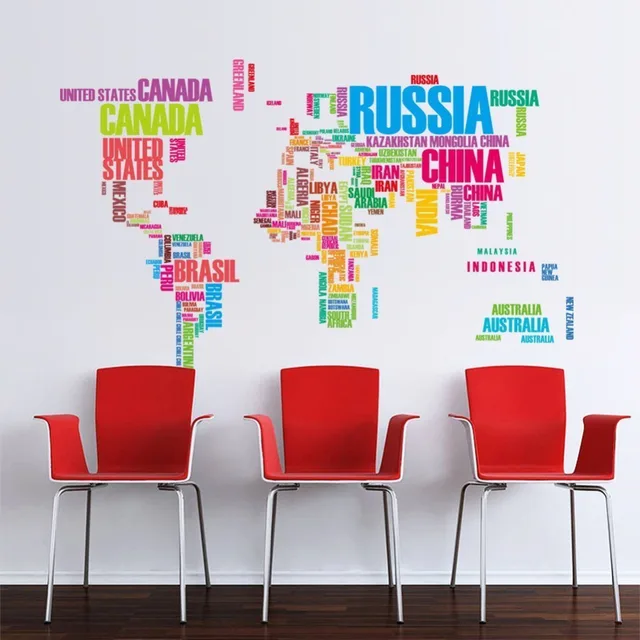 Color World Map Removable Wall Decal Art Mural Home Wall Stickers