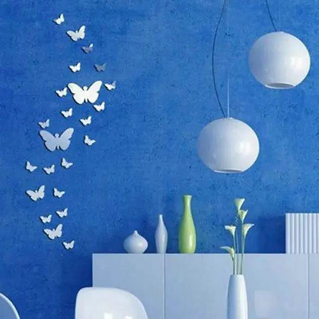 Diy 3d Silver Acrylic Butterfly Wall Stickers Decoration On Wall