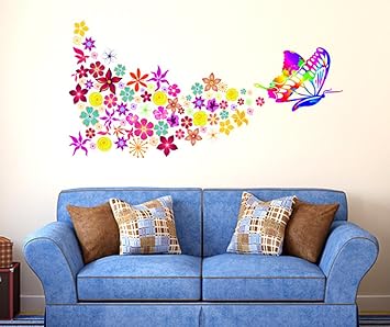 Buy Decals Design Butterfly With Colorful Flowers Blowing Wall