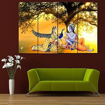 Wall Mantra 4 Panel Canvas Wall Art Painting Radha Krishna Home