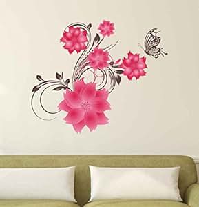 Buy Decals Design Pink Flowers Leaves And A Butterfly For Nature