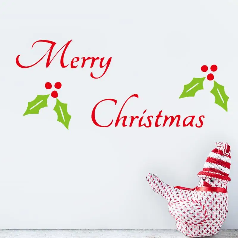 Merry Christmas Wall Decal Set With Holly Berries Tweetheartwallart