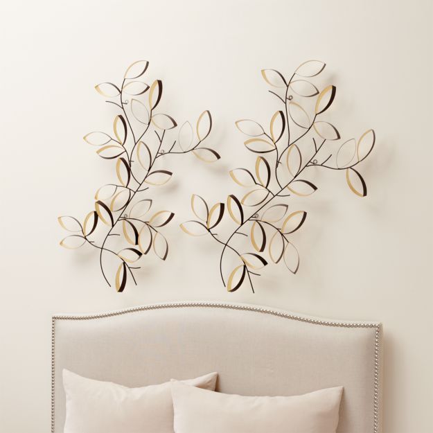 Set Of 2 Golden Leaves Wall Art Reviews Crate And Barrel