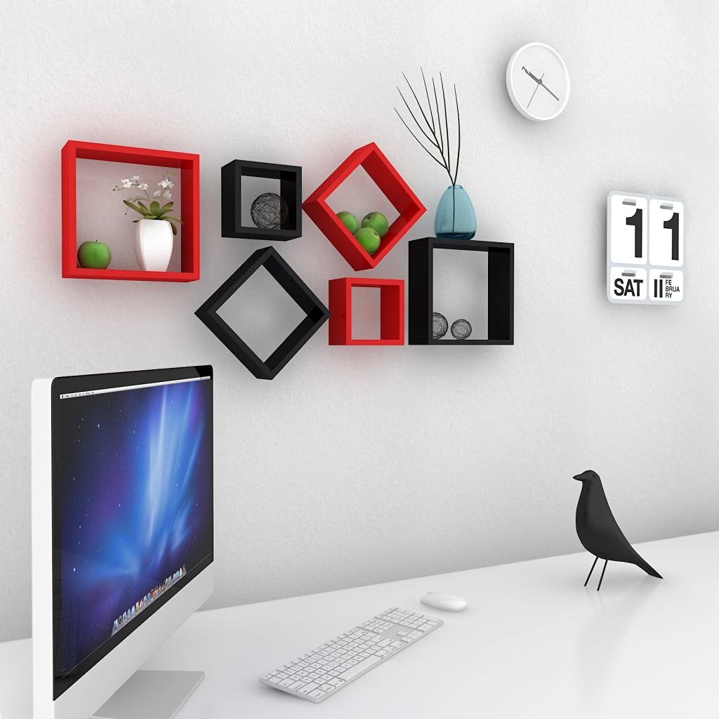 Wall Shelf Set Of Nesting Square Wall Shelves Rack Unit Red Black