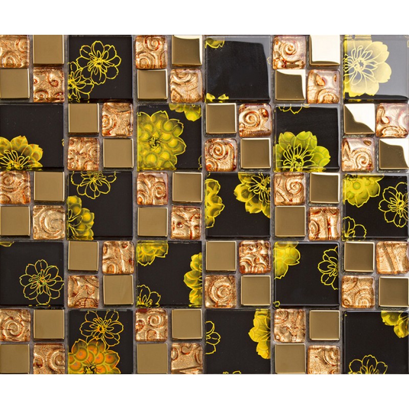 Plated Gold Crystal Mosaic Tile Wall Backsplashes Hall Wall Design