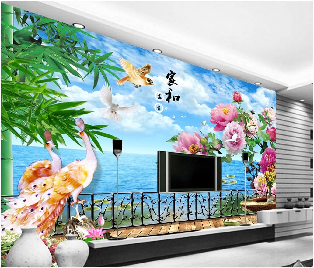 3d Wallpaper Custom Photo Mural Lake Peacock Peonies Background Wall