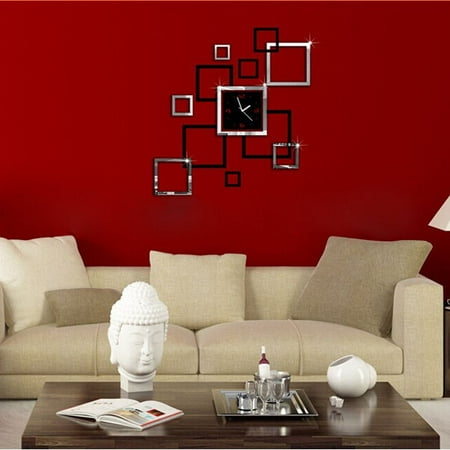 Diy 3d Square Wall Clock Acrylic Stickers Living Room Mordern