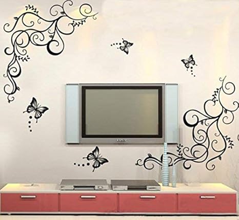 Black Flowers Butterflie Vinyl Wall Stickers Home Decor Art Decals